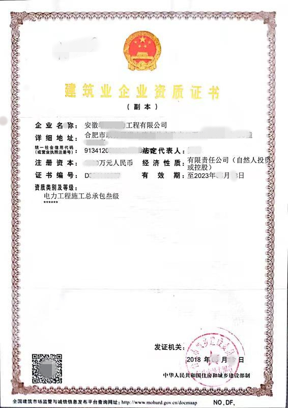 名稱(chēng):建筑企業(yè)資質(zhì)證書(shū)