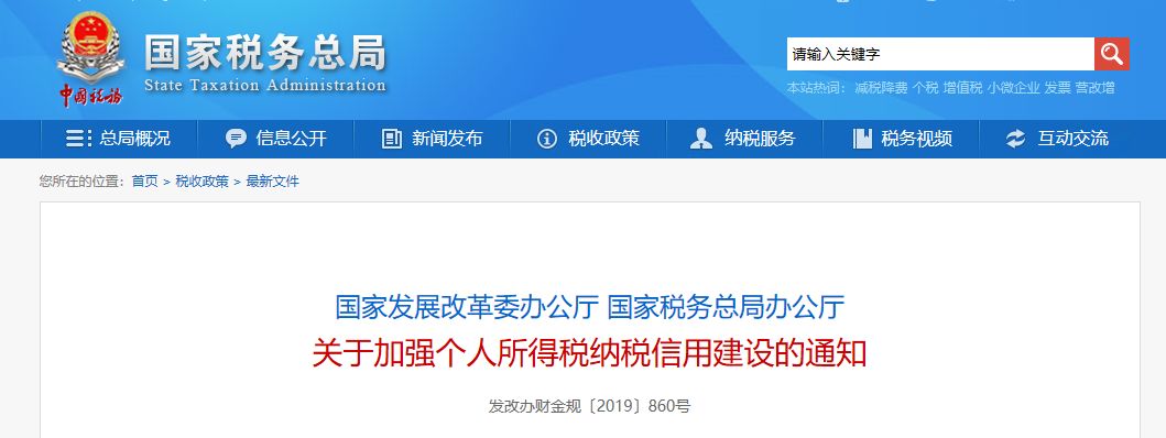近日,國(guó)家稅務(wù)總局發(fā)布《國(guó)家發(fā)展改革委辦公廳 國(guó)家稅務(wù)總局辦公廳 關(guān)于加強(qiáng)個(gè)人所得稅納稅信用建設(shè)的通知》。