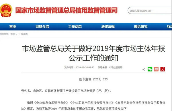 市場(chǎng)監(jiān)管總局關(guān)于做好2019年度市場(chǎng)主體年報(bào)公示工作的通知