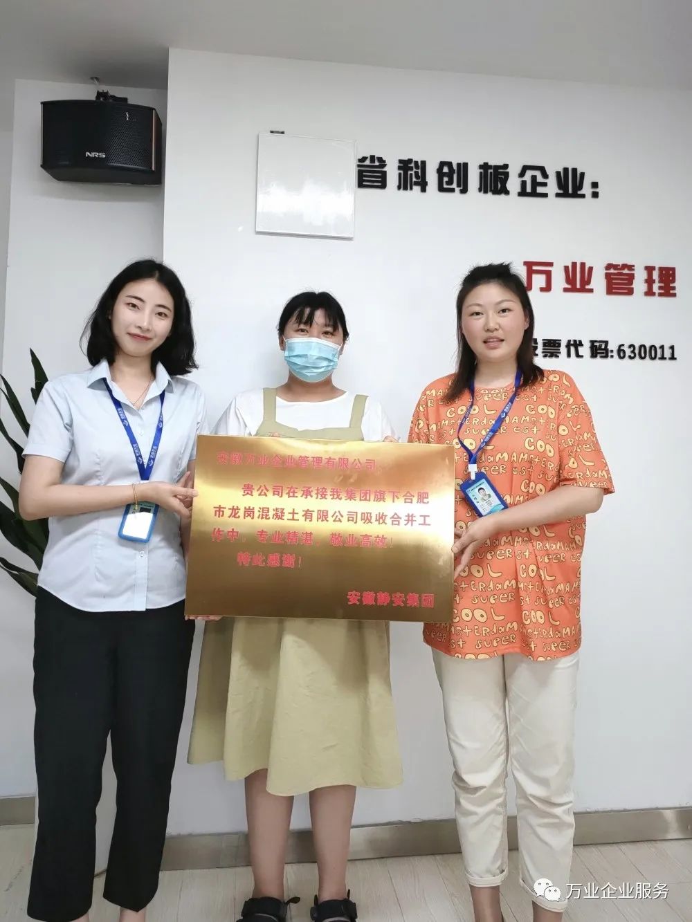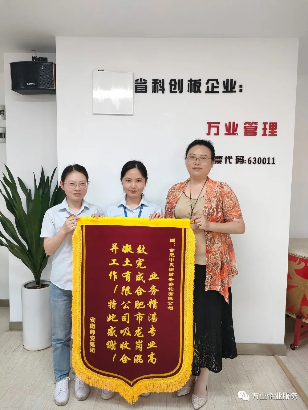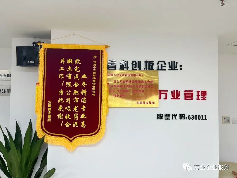 5月26日,安徽靜安集團(tuán)為安徽萬(wàn)業(yè)·中天衡送來(lái)一面錦旗和一塊牌匾。其集團(tuán)代表負(fù)責(zé)人說(shuō):“真是太感謝了,要不是萬(wàn)業(yè)中天衡的鼎力幫助,高效的完成了合肥市龍崗混凝土有限公司吸收合并工作,我們的業(yè)務(wù)也不會(huì)開(kāi)展的如此順利!”